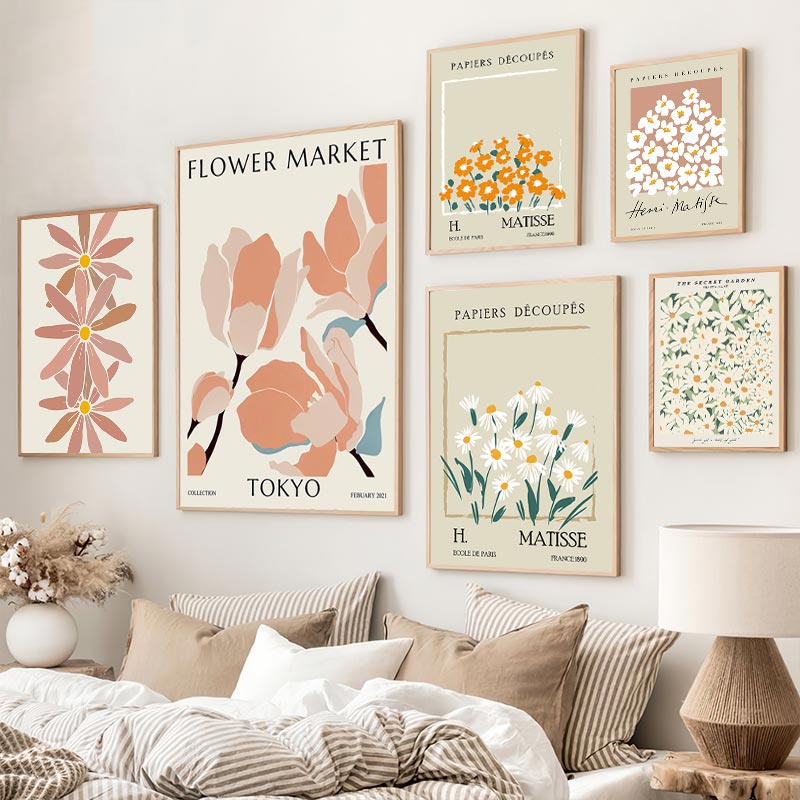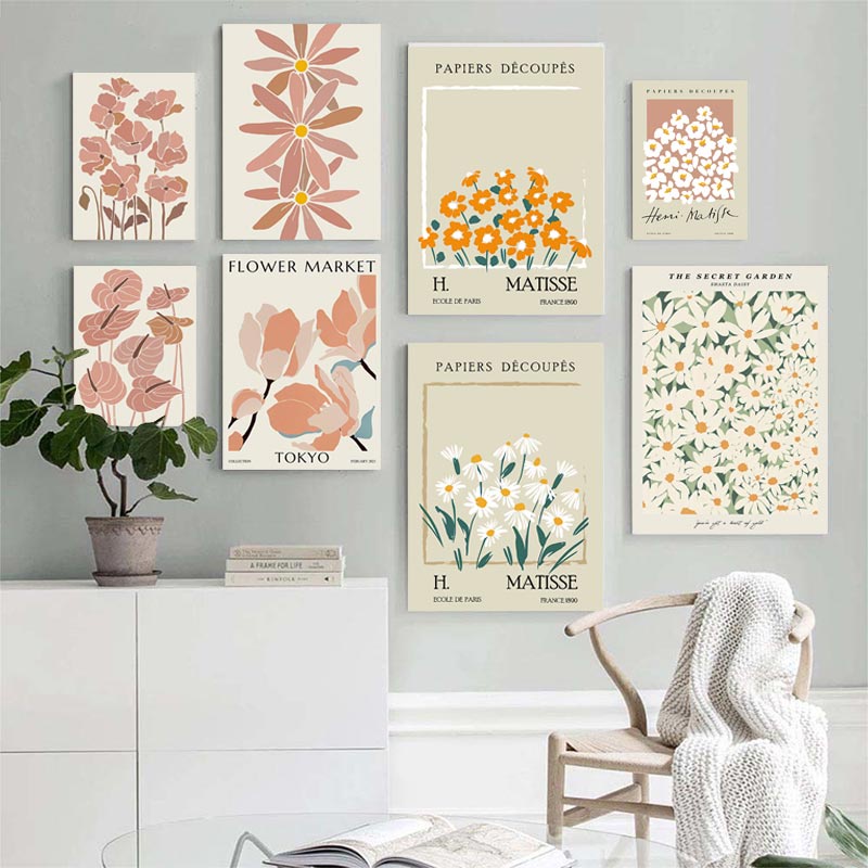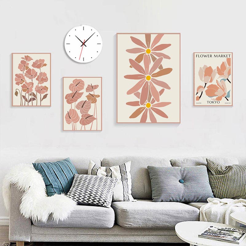 โปสเตอร์ภาพวาดผ้าใบ รูปดอกไม้ สไตล์นอร์ดิก สําหรับตกแต่งผนังห้องนั่งเล่น
