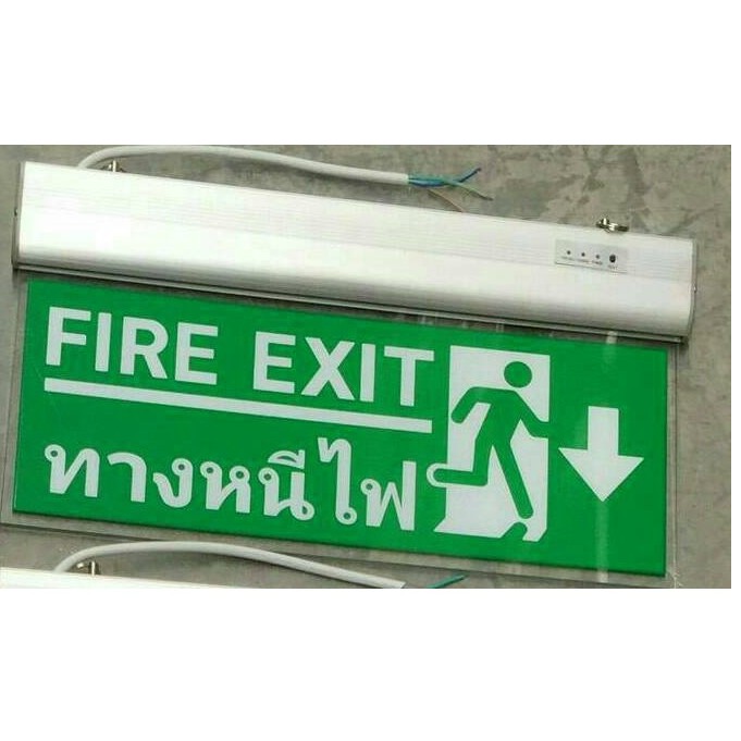 ป้ายไฟฉุกเฉิน Fire Exit รูปคนวิ่งทางหนีไฟลูกศรชี้ลง สำรองไฟ 3-5 ชม.