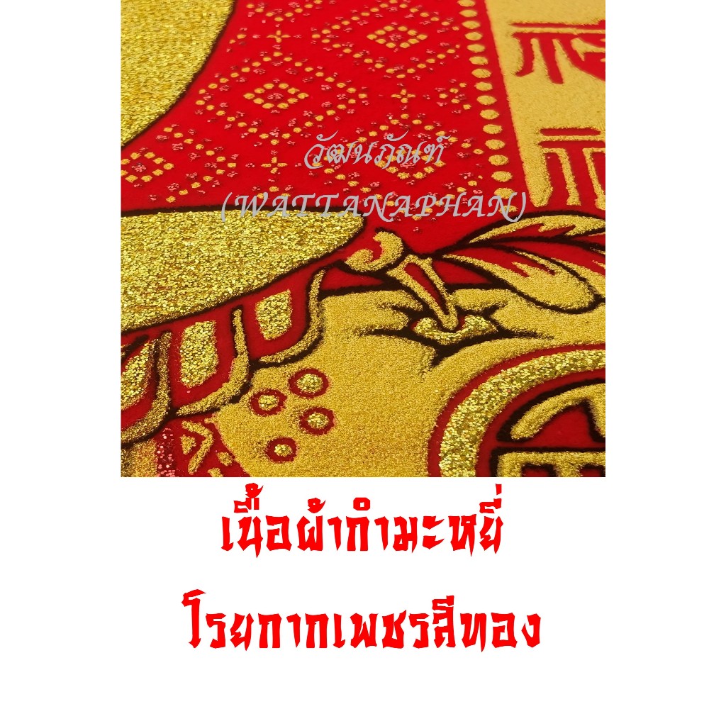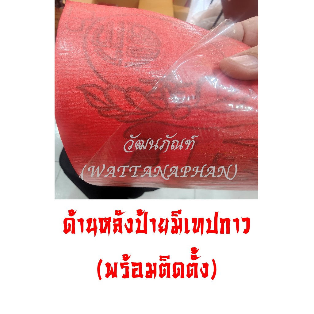 ตัวหนังสือนูน เกล็ดทอง บนแผ่นผ้ากำมะหยี่สีแดงสด