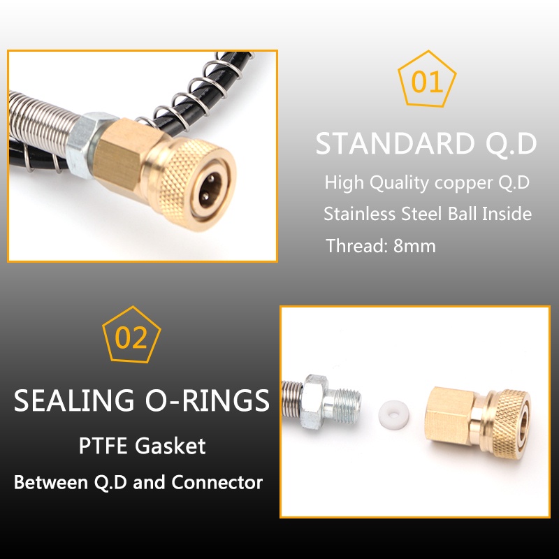 ท่อไนล่อนแรงดันสูง 50 ซม. พร้อมข้อต่อเชื่อมต่อเร็ว M10x1 PCP นิวเมติกเติมอากาศ พร้อมสปริงห่อ 40Mpa 400Bar 6000psi และอะไหล่ปั๊มลม