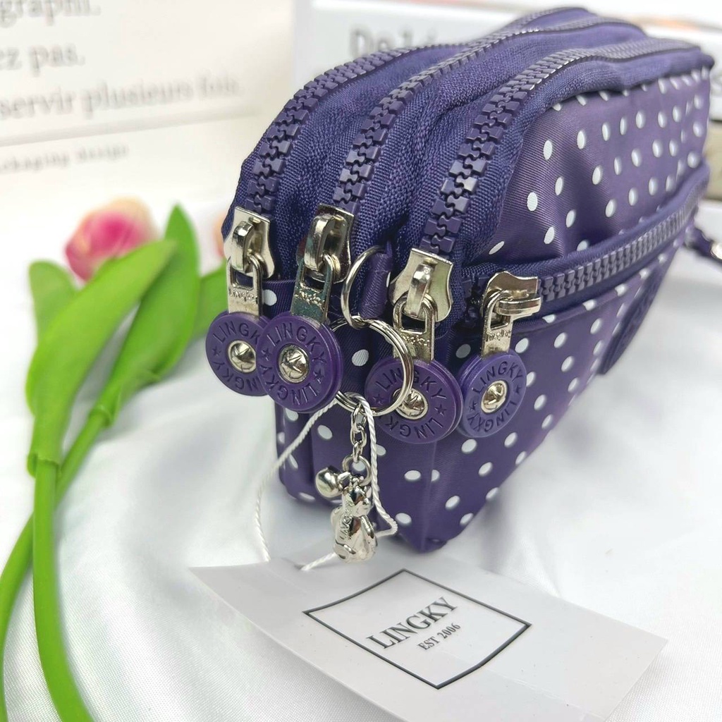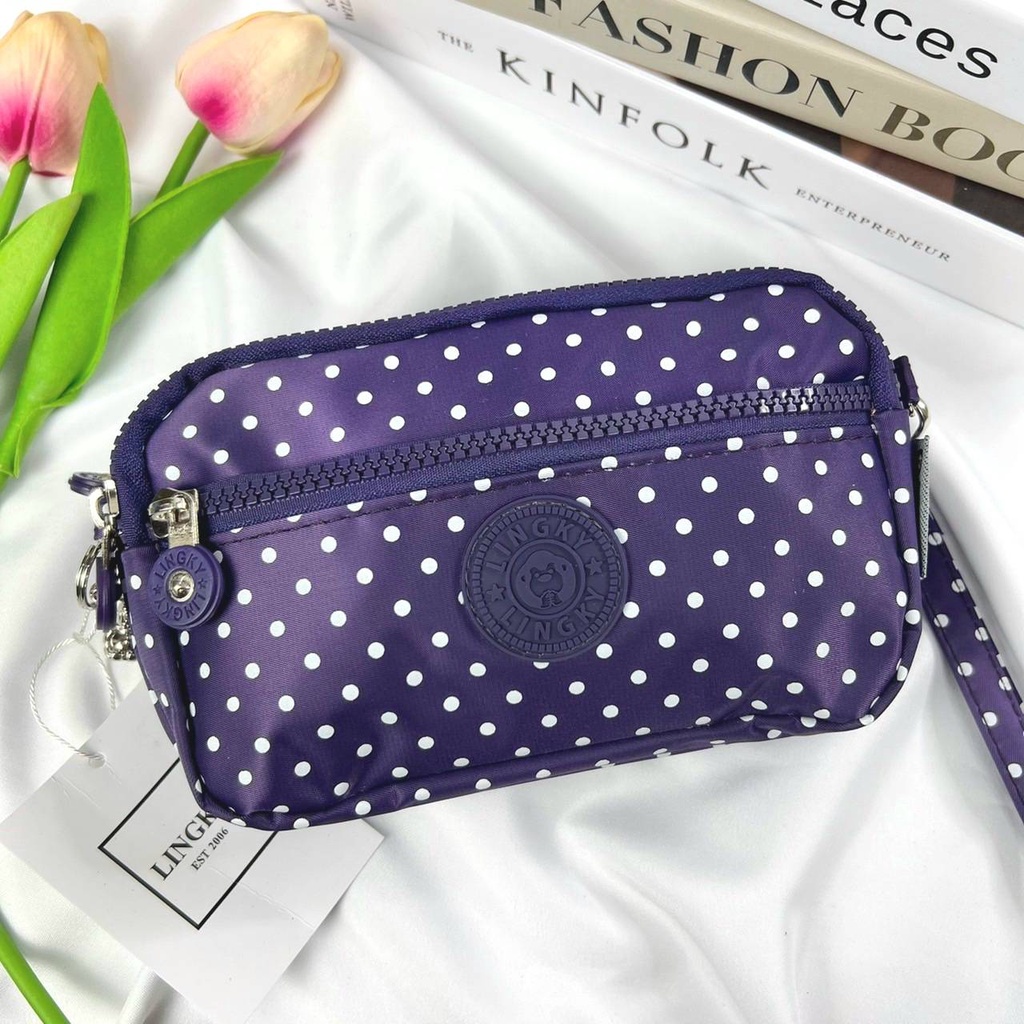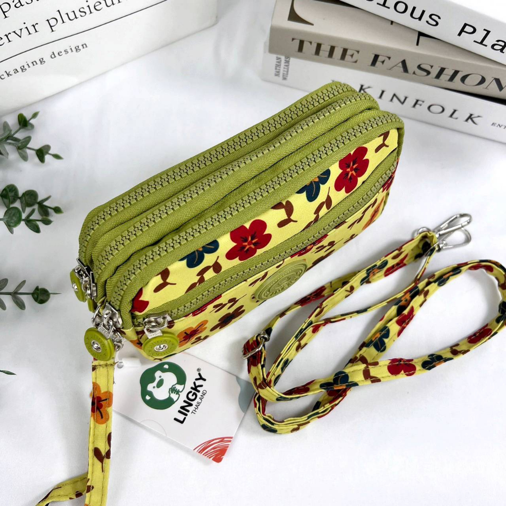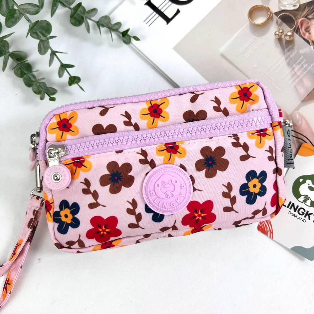 หยิบใส่ตะกร้ากระเป๋าผ้า 4 ซิบ ขนาด 7.5″ ใส่โทรศัพท์ได้ มีสายคล้องมือ สะพายข้างได้ สามารถปรับสายได้ #4ซิบลิงกี้