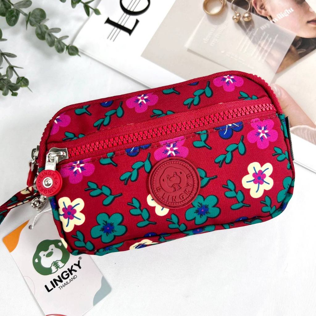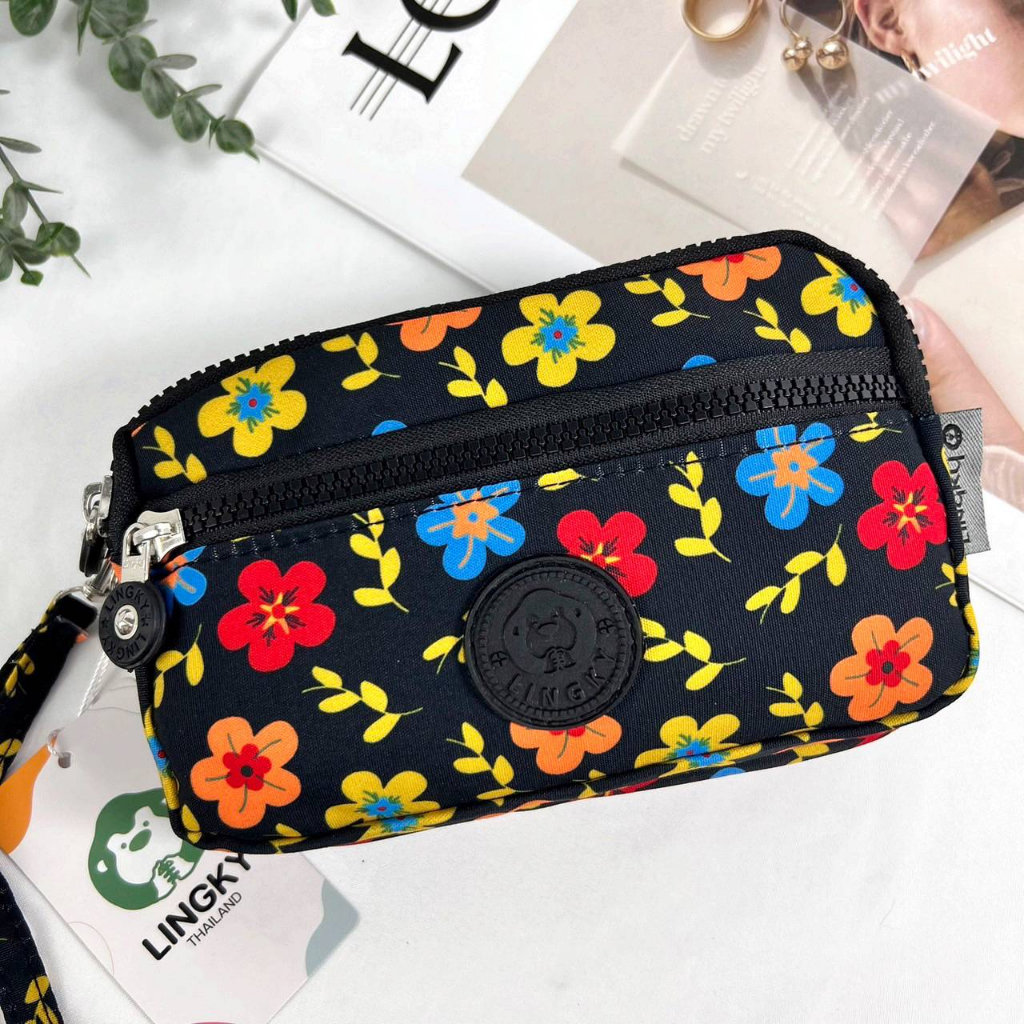 กระเป๋าผ้า 4 ซิบ ขนาด 7.5″ ใส่โทรศัพท์ได้ มีสายคล้องมือ สะพายข้างได้ สามารถปรับสายได้ #4ซิบลิงกี้