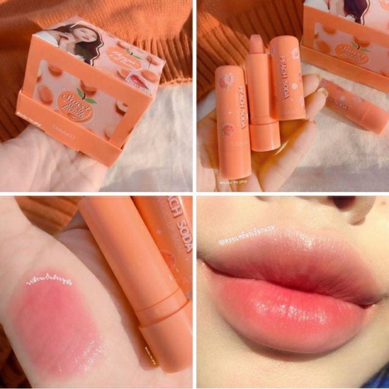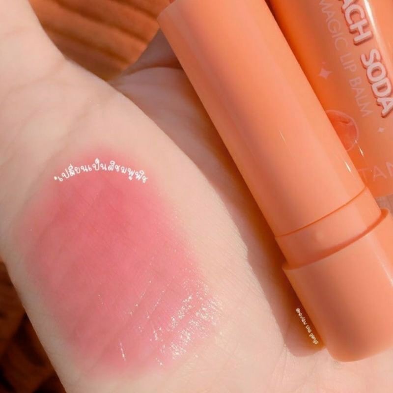 🍊ลิปมันเนื้อนุ่มเปลี่ยนสีได้ มีส่วนผสมของ Shea Butter และ Vitamin E ช่วยบำรุงริมฝีปากให้นุ่มชุ่มชื่น มีความอวบอิ่ม ไม่แห้งแตก ทาลงบนริมฝีปากแล้วเป็นสีชมพู มีกลิ่นหอมพีช หวานๆ แนวฟรุตตี้