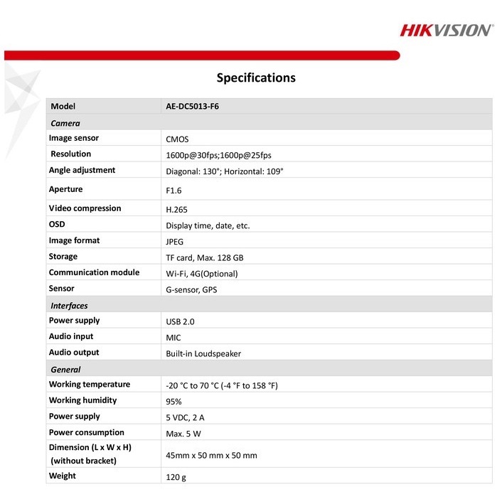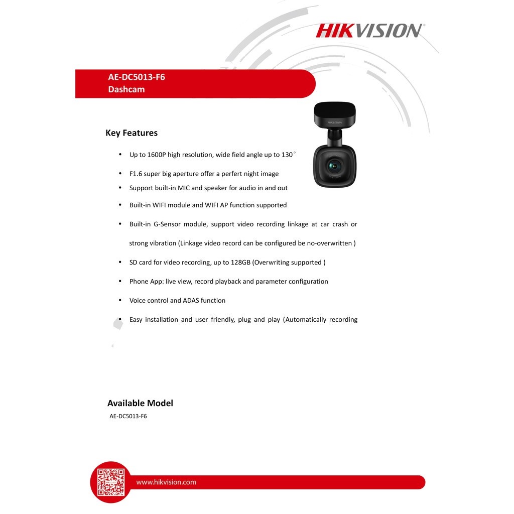กล้องติดรถยนต์ Hikvision รุ่น AE-DC5013-F6 รองรับ Wifi+Smart Function ความละเอียด 1600P