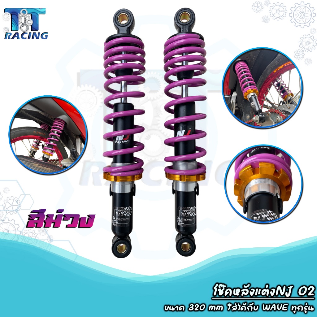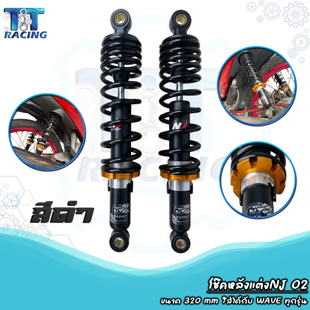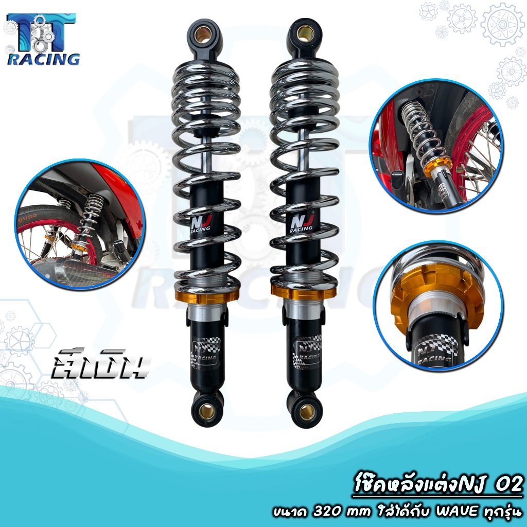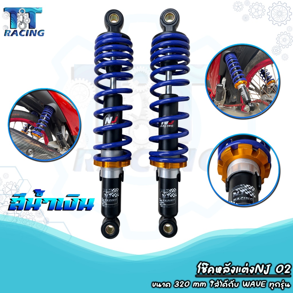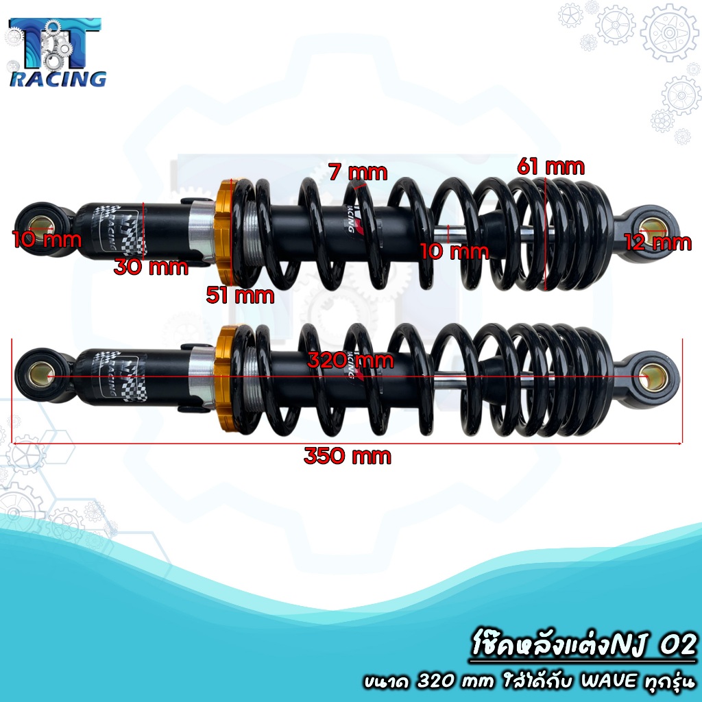 โช๊คหลังแต่ง ยี่ห้อ NJ (รหัส 02) สำหรับ WAVE ใส่ได้ทุกรุ่น ความยาว 320 mm. (ราคาต่อ 1คู่)