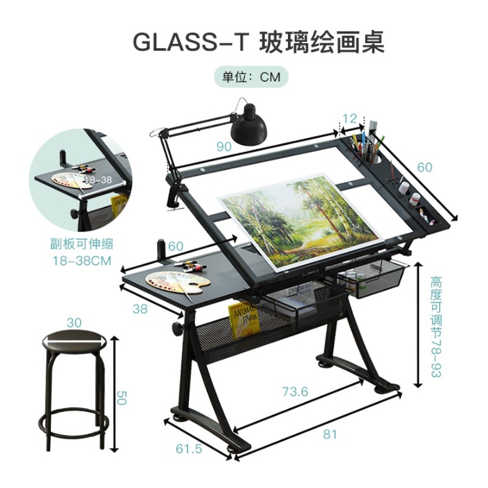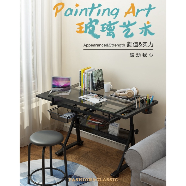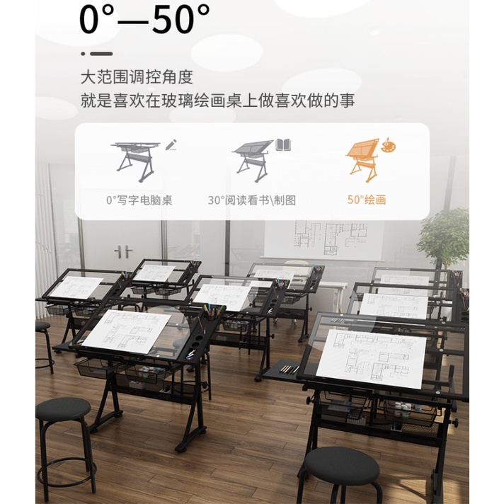 ERORO โต๊ะวาดรูป เขียนแบบ เป็นบานกระจก ปรับระดับความเอียงได้ เหมาะใช้ ทํางานต่างๆ