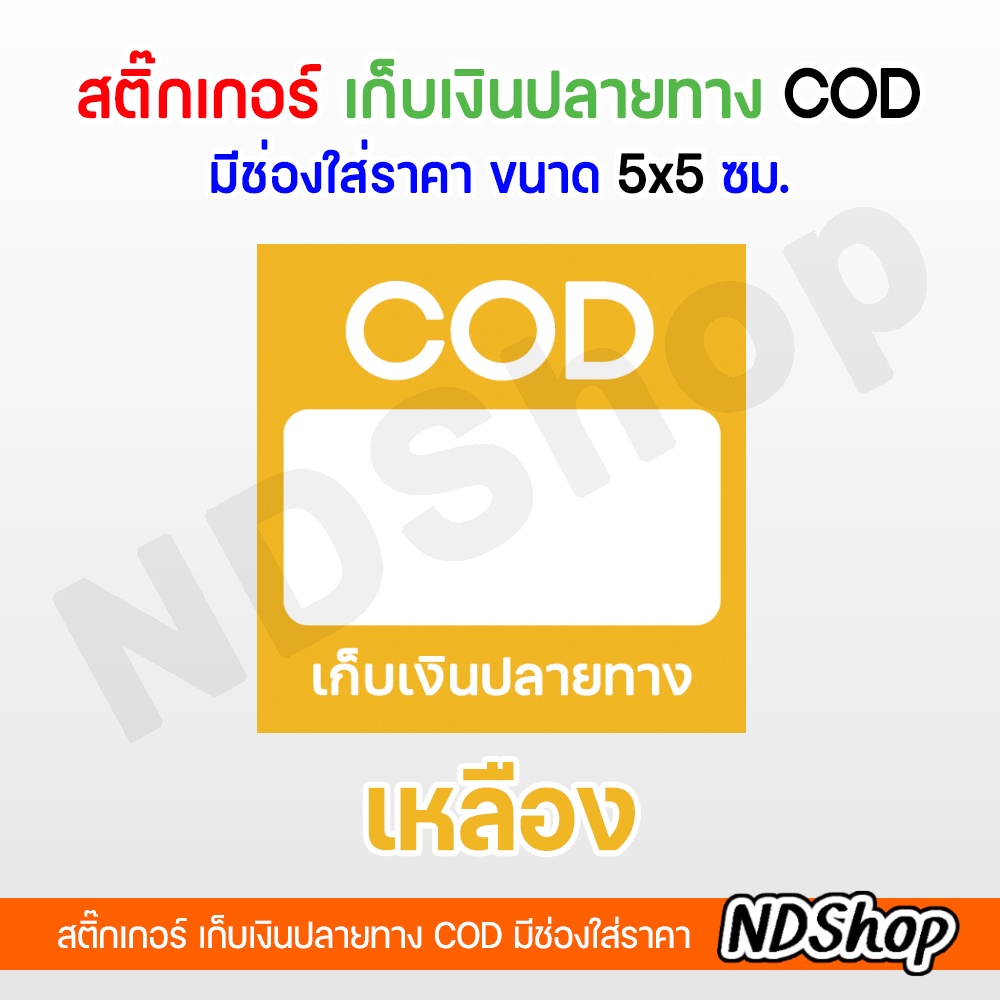 สติ๊กเกอร์ COD ใส่จำนวนเงินได้ สีเหลี่ยม ผิวมันเงากันน้ำ 💥โปรพิเศษ 5 แผ่น ฟรี 1 แผ่น💥 คละลายได้