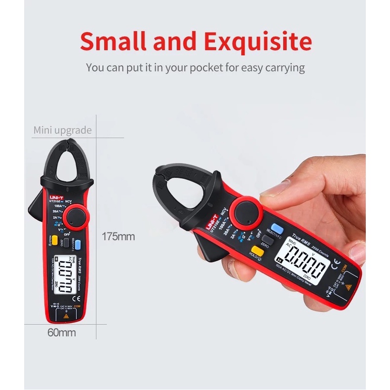 Spell♂UNI-T UT210E Mini Digital Handheld Clamp Multimeter Backlight LCD True RMS Voltmeter Ammeter Ohmmeter AC/DC Voltage Current Capacitance Resistance NCV Continuity Test Diode Tester with Storage Bag