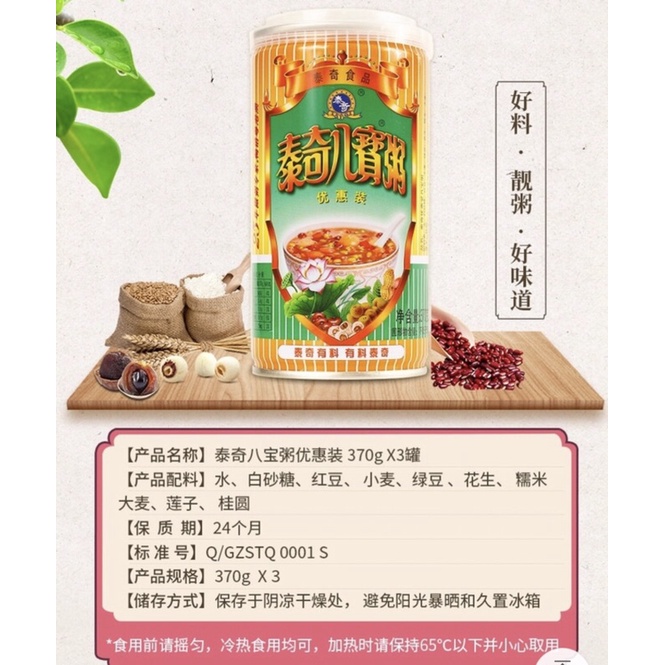 โจ๊กกระป๋อง โจ๊กเมล็ดธัญญาพืช พร้อมทาน (泰奇八宝粥)ขนาด370g #พร้อมส่ง# เป็นอีกเมนูอาหารที่ได้ทั้งอร่อยและมีประโยชน์อย่างลงตัว รสชาติหอมอร่อยกลมกล่อม