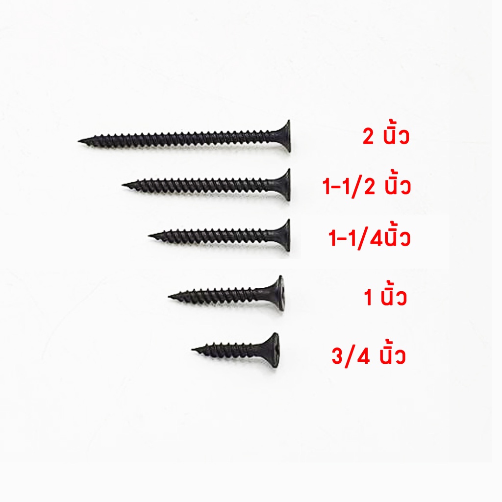 สกรูดำยิงฝ้า สกรูไดวอล ชุบแข็ง บรรจุ 0.5 kg. มีหลายขนาด สกรูยิงฝ้า ยิงผนัง ไดวอ สกรูดำ สกรูยิปซัม