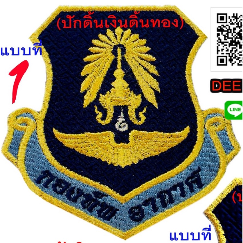 กองทัพอากาศ มี 2แบบ ชิ้นละ 55 บาท ปักด้วยดิ้น (แบบติดตีนตุ๊กแกหนาม ราคา 75บาท) อาร์มปัก แพท No.346 / DEEDEE2PAKCOM