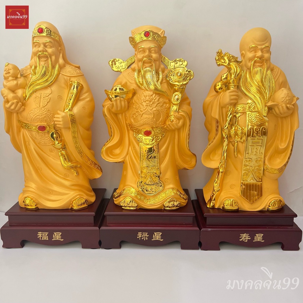 ฮกลกซิ่ว 3 องค์ (จัดส่งฟรี) งานเรซิ่นพ่นทรายทอง สูง 13 / 20 นิ้ว แก้ชงปี 66
