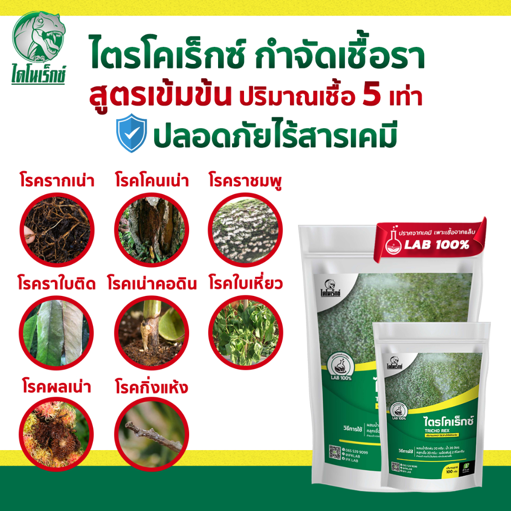 ไตรโคเร็กซ์ เชื้อราไตรโคเดอร์มา ช่วยป้องกันและยับยั้งโรคพืชที่เกิดจากเชื้อรา เช่น