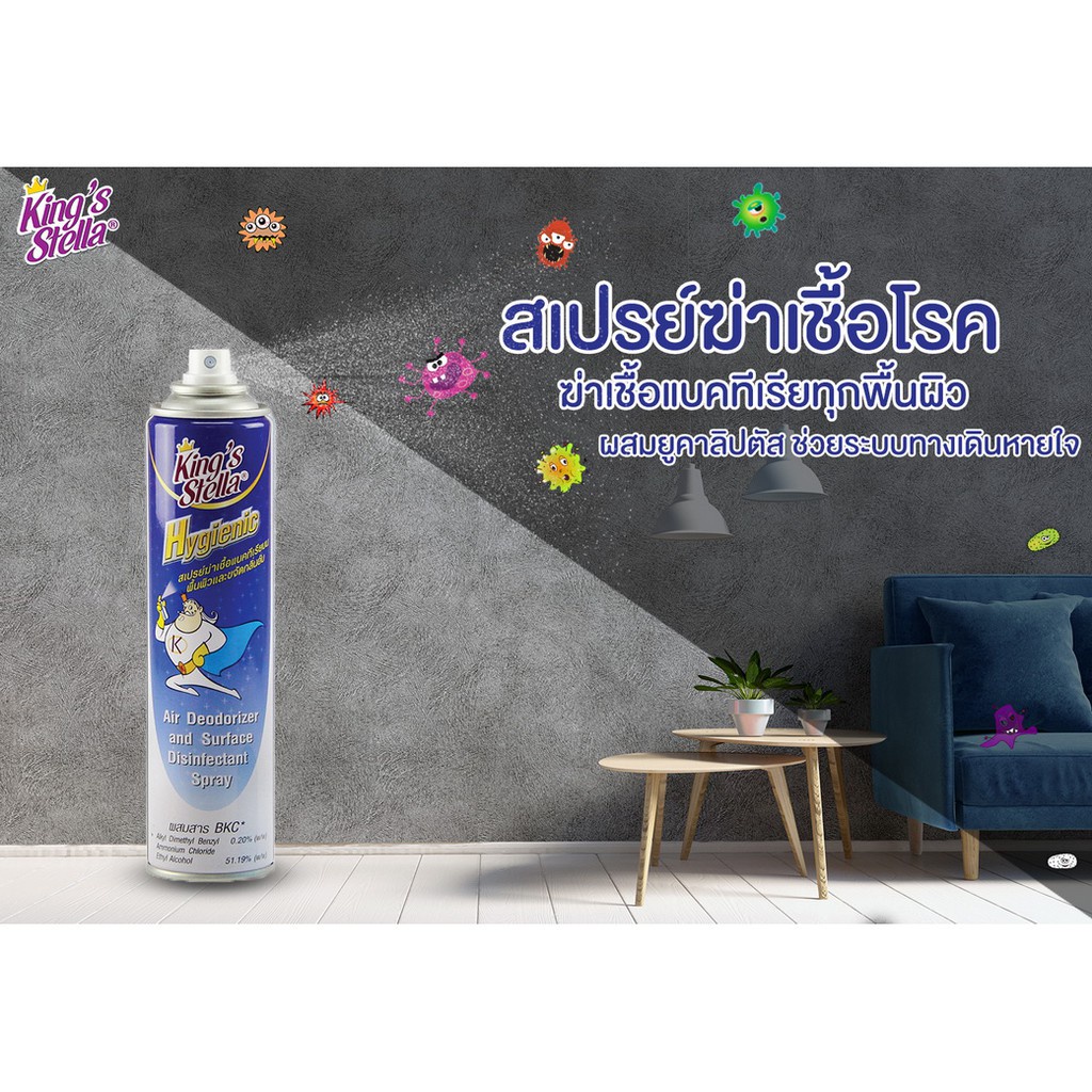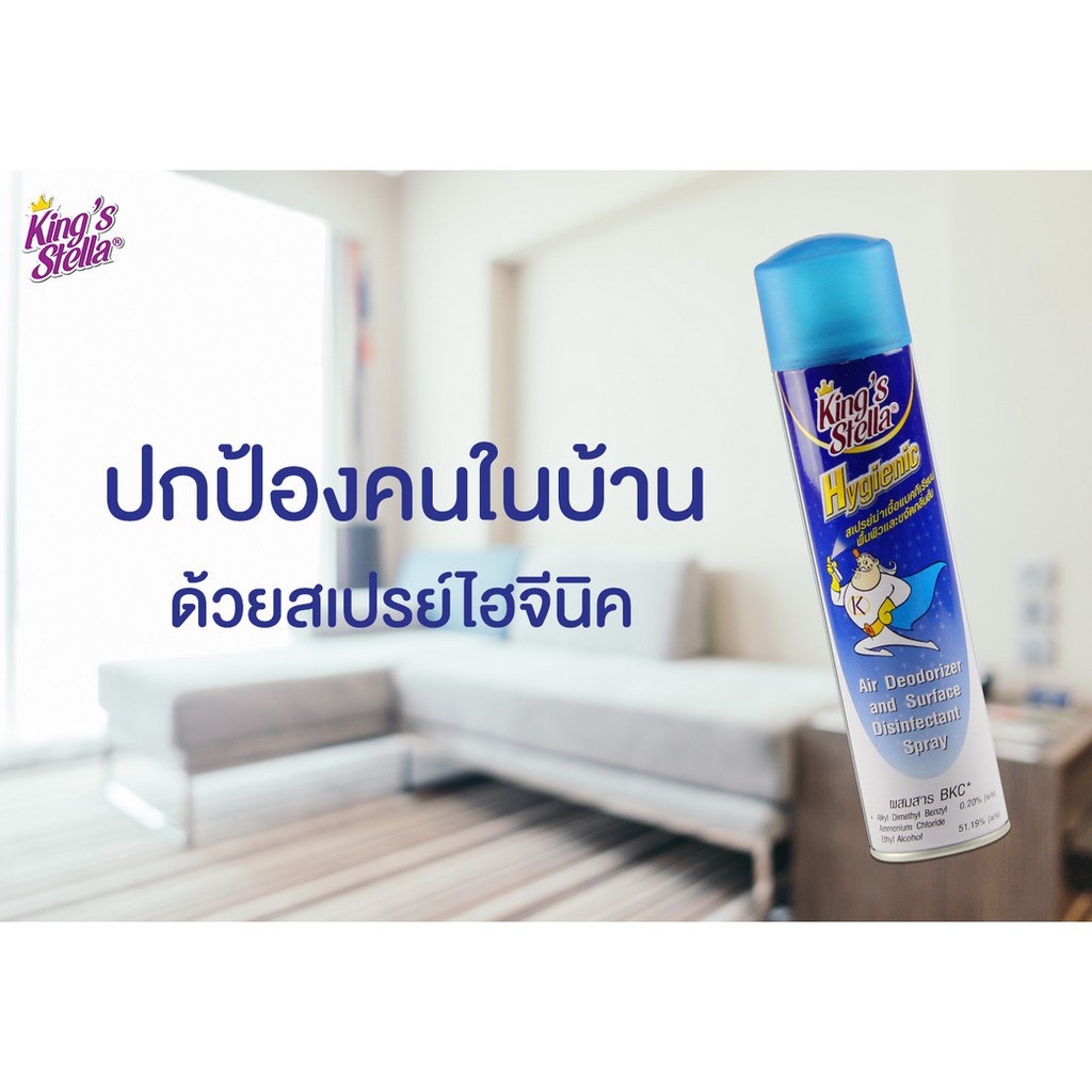 King’s Stella (คิงส์สเตลล่า) Hygienic ไฮจีนิค สเปรย์ปรับอากาศ ฆ่าเชื้อแบคทีเรีย ในอากาศและพื้นผิว ขจัดกลิ่นอับ 300ml