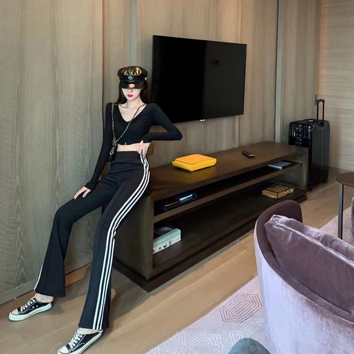 กางเกงขายาวผู้หญิงใส่แล้วขาเรียวสวย กางเกงเกงขายาวขาม้า ดีเทลมีแถบข้าง กางเกงขายาวเข้ารูป