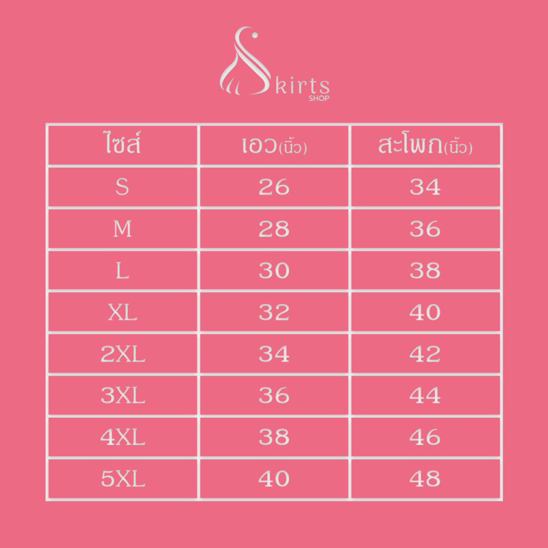 ความยาว : S- 3XL ยาว 22 นิ้ว // 4XL-5XL ยาว 24 นิ้ว