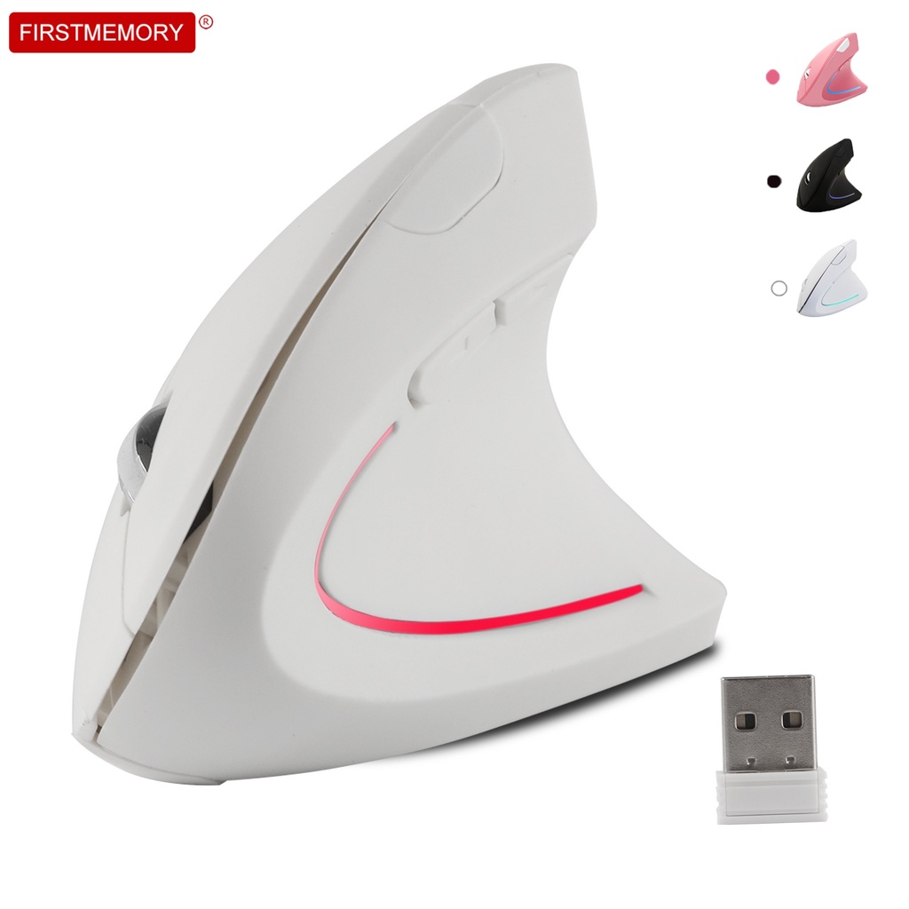 เมาส์ออปติคอลไร้สาย 2.4G 1600 DPI แนวตั้ง ออกแบบตามสรีรศาสตร์ พอร์ต USB สีชมพู สีดํา สําหรับคอมพิวเตอร์ โน๊ตบุ๊ค