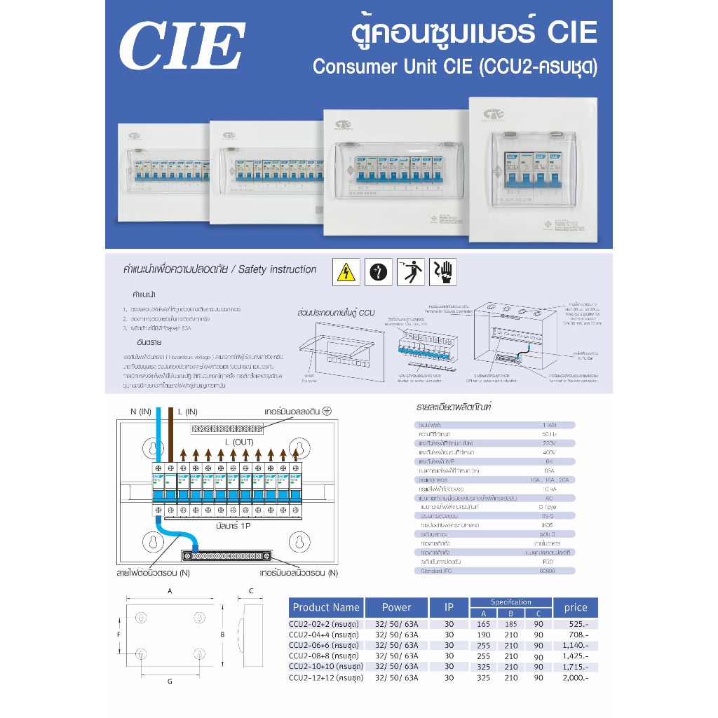 ตู้คอนซูเมอร์ Consumer Unit CIE ตู้ครบชุด 2 ช่อง รุ่น CCU2-02+2 แบรนด์ CIE