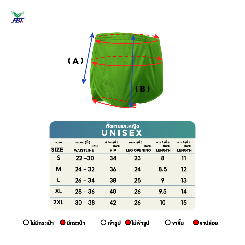 ประเภทสินค้า : FBT กางเกงวิ่งสีล้วน 22011 (แบบบาง)
