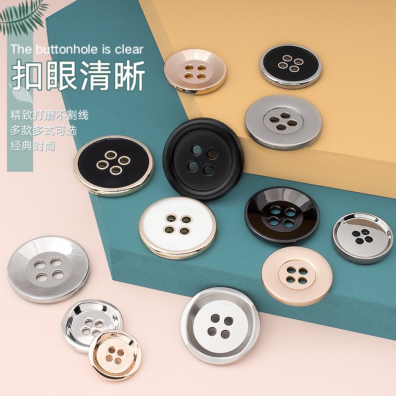 กระดุมโลหะ ขอบกว้าง สี่ตา ทรงกลม สีทอง สไตล์วินเทจ สําหรับเสื้อโค้ท