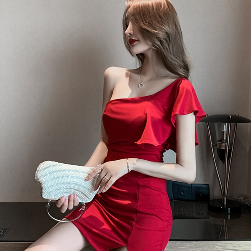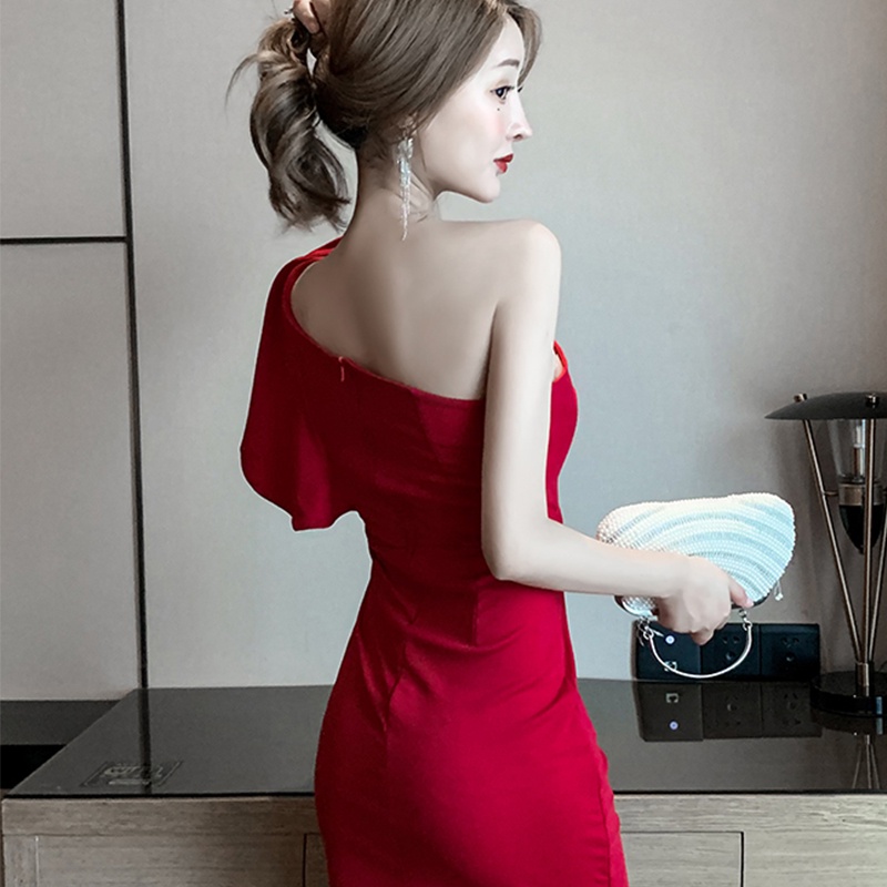 *New* ชุดเดรสปาดไหล่ข้างเดียว ใส่ไปงานพรม ใส่ไปปาร์ตี้ ชุดเดรสสุดแซ๋บ