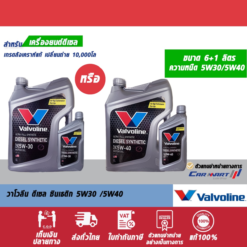 VALVOLINE วาโวลีน ดีเซล ซินเธติค น้ำมันเครื่อง ดีเซล สังเคราะห์แท้ 5W30 / 5W40 6 ลิตร ฟรี 1 ลิตร