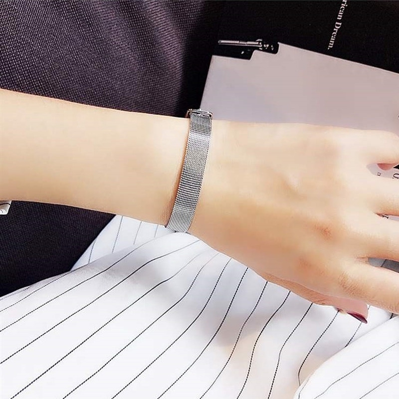 หยิบใส่ตะกร้าแบรนด์ใหม่ แฟชั่น สร้อยข้อมือ สเตนเลส รูปทรงสายนาฬิกา เรียบง่าย สร้อยข้อมือเหล็กไทเทเนียม สําหรับผู้ชาย และผู้หญิง