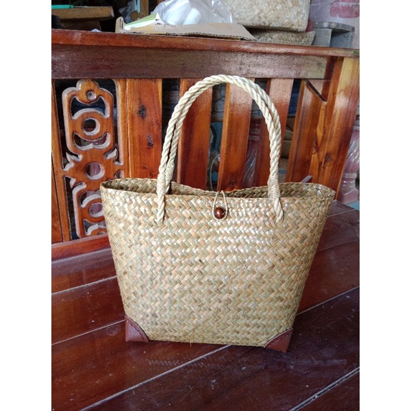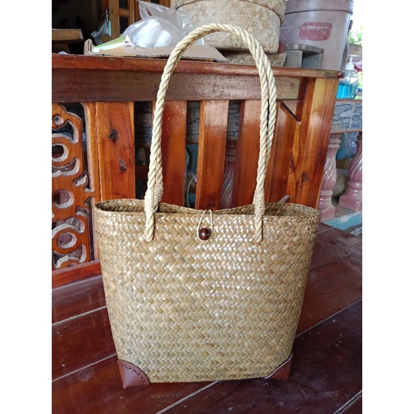 กระเป๋าสานกระจูดแบบฐานทรงญาญ่าใส่มุม