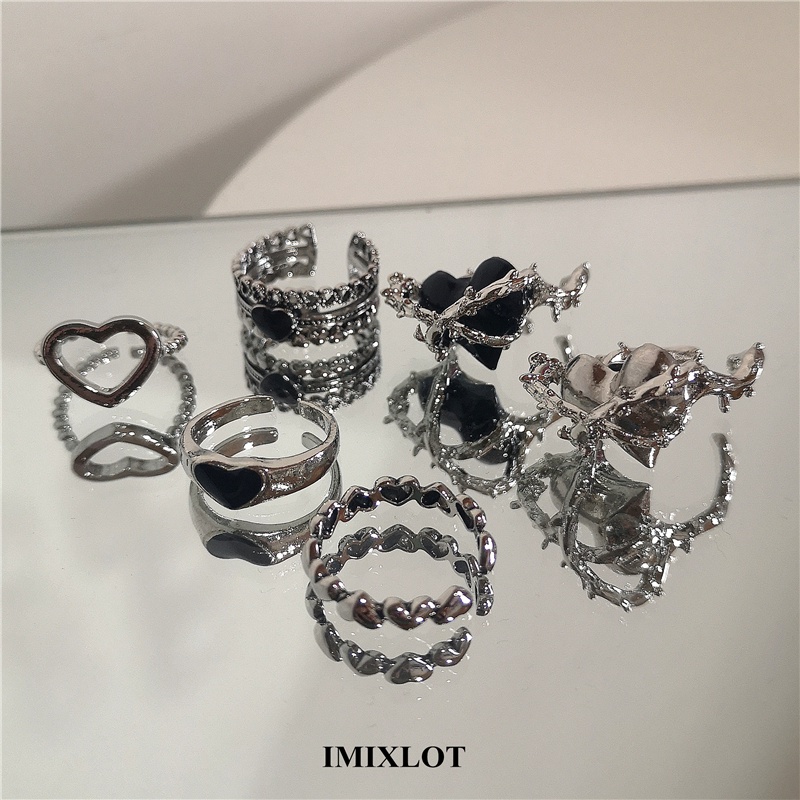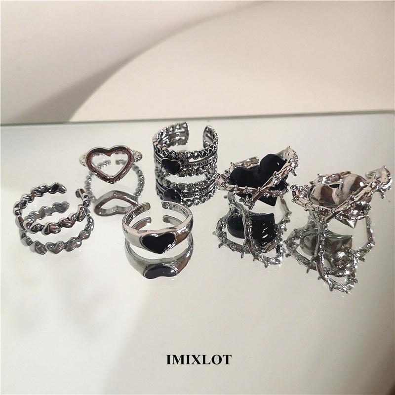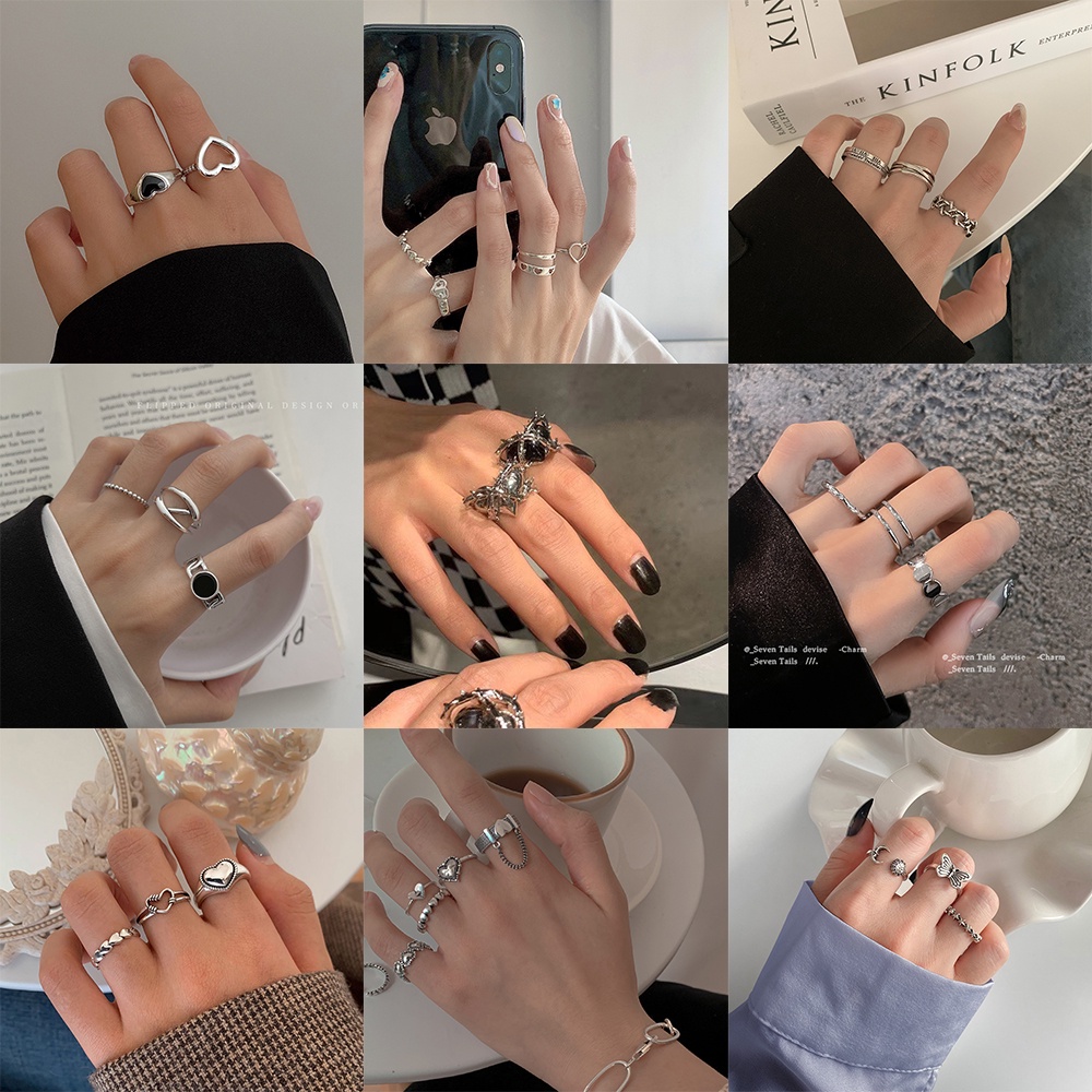 17KM ชุดแหวนเงิน เรียบง่าย หัวใจ กลวง บาง เครื่องประดับ แฟชั่น Unisex