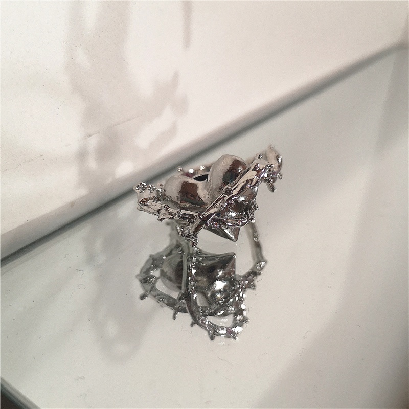 ชื่อ: 17KM ชุดแหวนเงิน เรียบง่าย หัวใจ กลวง บาง เครื่องประดับ แฟชั่น Unisex