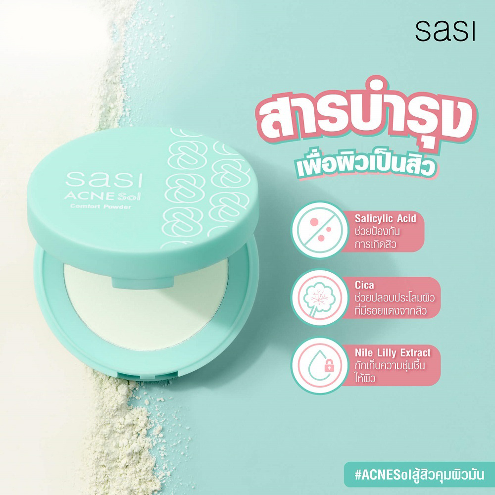ศศิ แอคเน่ โซล คอมแพค พาวเดอร์ 4.5 กรัม Sasi Acne Sol Compact Powder 4.5g Acne Sol Comfort Powder แป้งสำหรับใบหน้า 4.5g