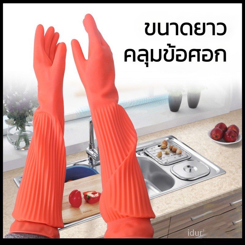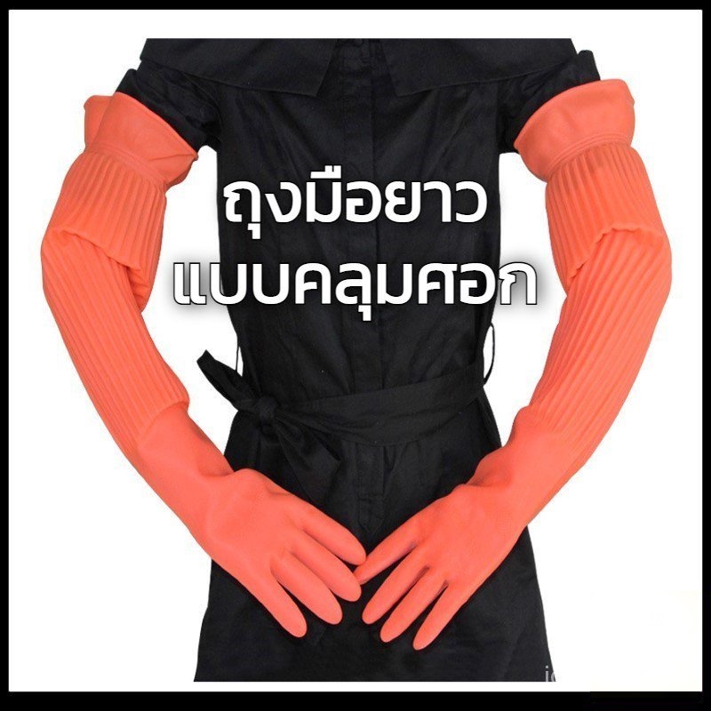 *พร้อมส่งในไทย* ถุงมือยาง ถุงมือล้างจาน ถุงมือยางแบบยาวพิเศษ ยาวคลุมข้อศอก