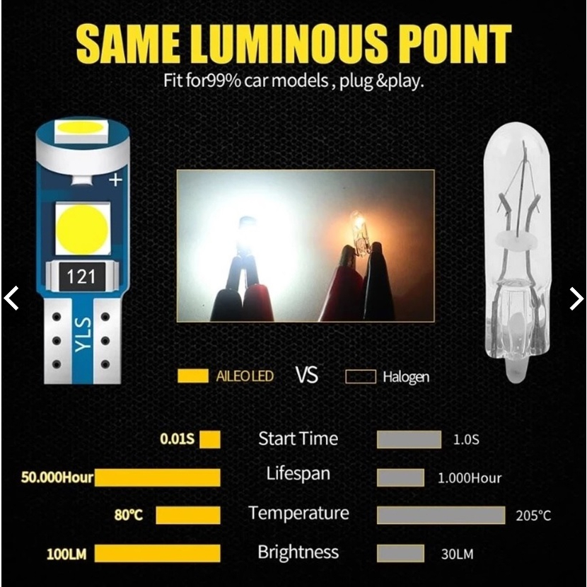 หลอดไฟ LED ไฟเรือนไมล์ ขั้วT5 3 ชิพ หลอดไฟหน้าปัด 3030 แสงสีขาวราคาต่อ 1 หลอด
