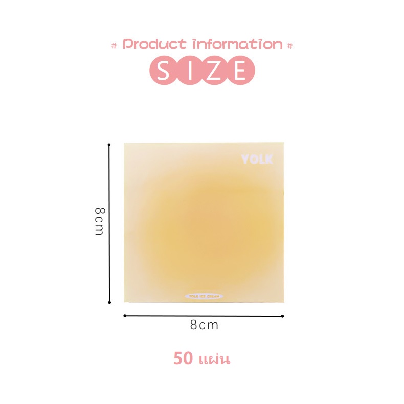 สินค้า: กระดาษโน้ต จำนวนหน้าภายใน : 50 แผ่น ข้อมูลจำเพาะ: 8*8ซม น้ำหนักผลิตภัณฑ์เดี่ยว: 22 กรัม
