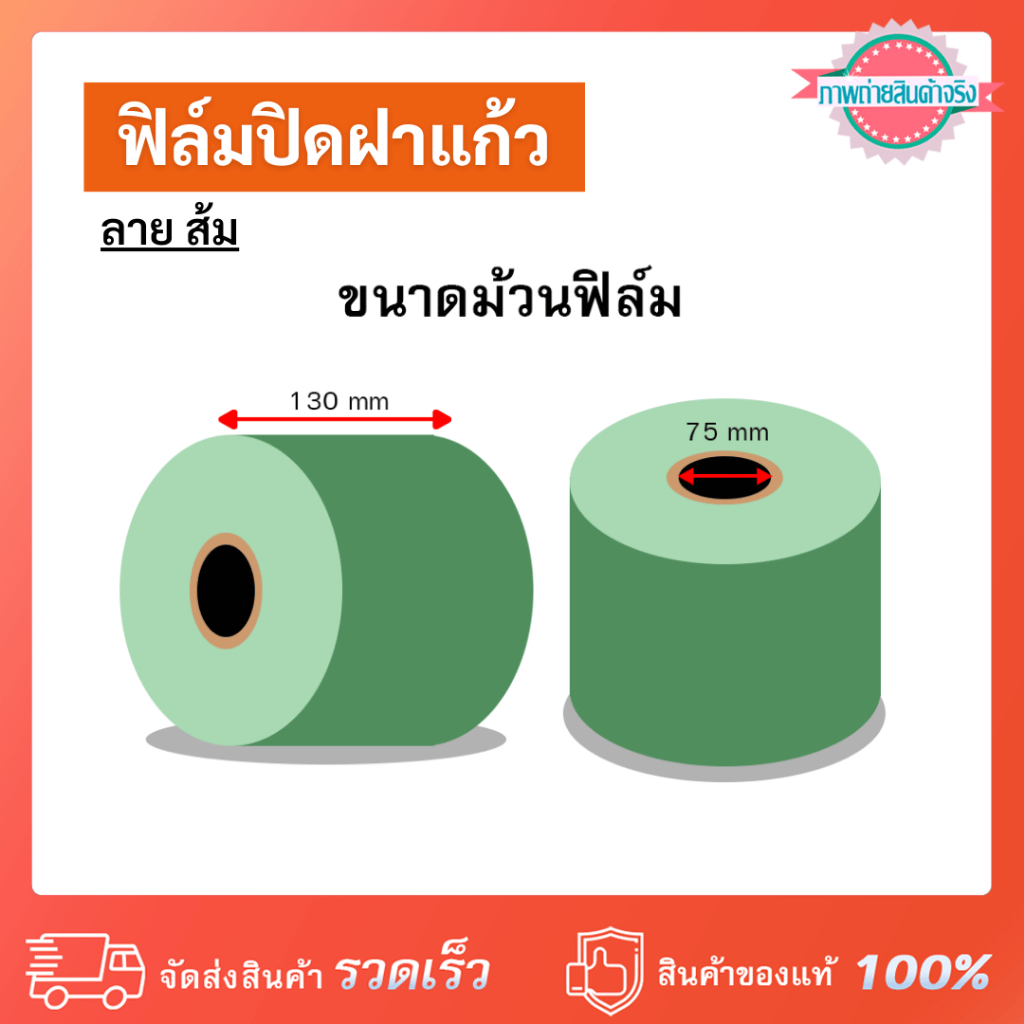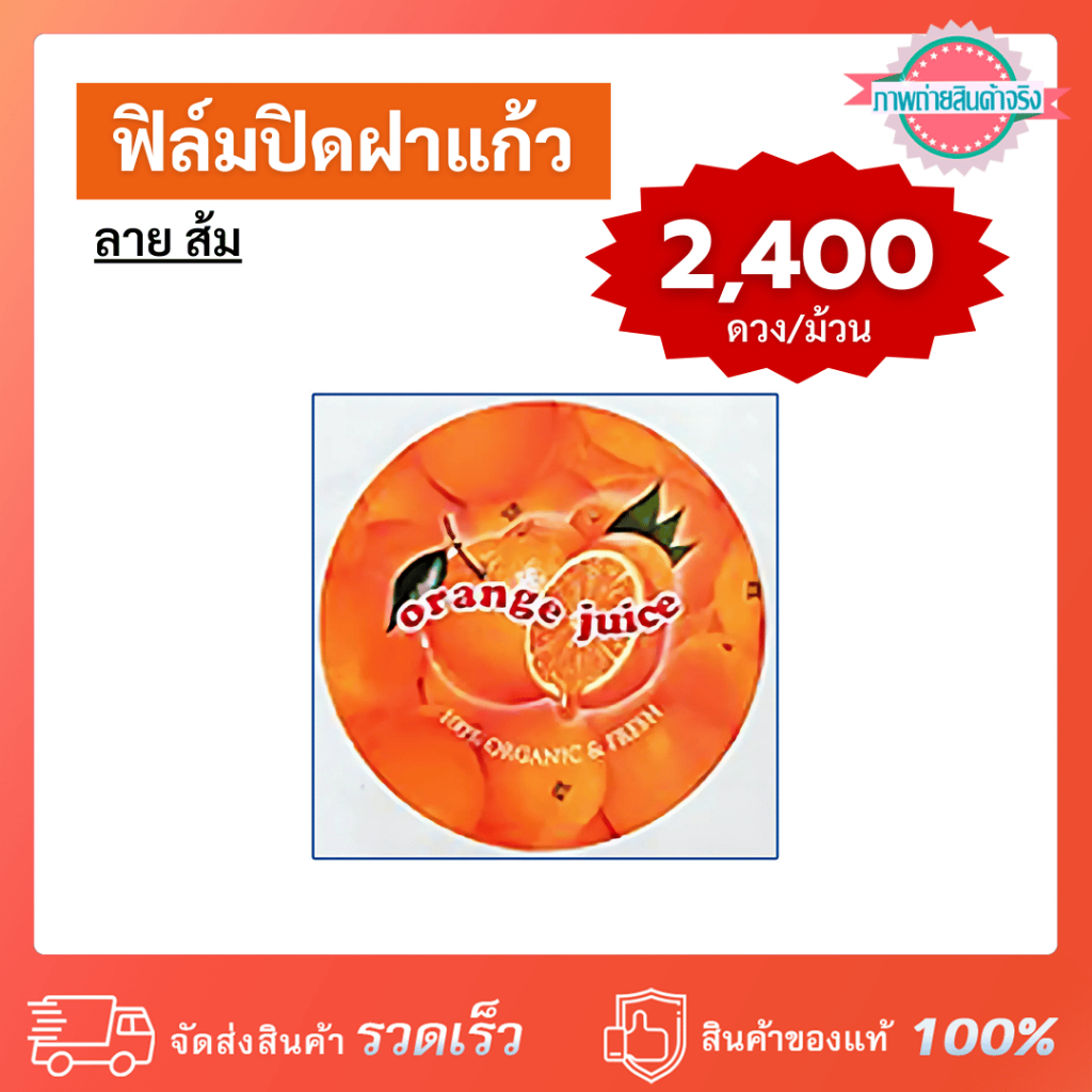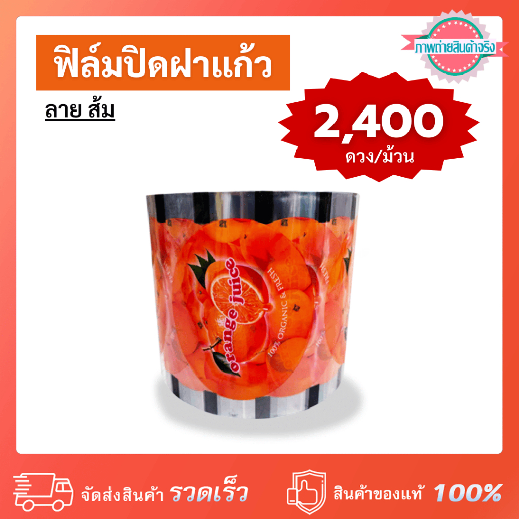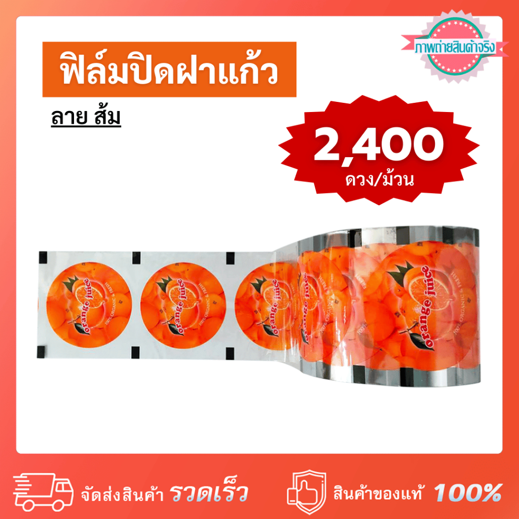 ฟิล์มปิดฝาแก้ว ลาย ส้ม มี 2,400 ดวง/ม้วน ลวดลายสวยงามน่ารัก ใช้สำหรับปิดฝาแก้วน้ำ น้ำปั่น น้ำผลไม้ ชานม ชาไข่มุก น้ำแข็งใสเกล็ดหิมะ ฯลฯ ใช้สำหรับเครื่องซีลปากแก้วระบบธรรมดา หรือเครื่องซีลปากแก้วระบบกึ่งอัตโนมัติ / อัตโนมัติระบบเซนเซอร์