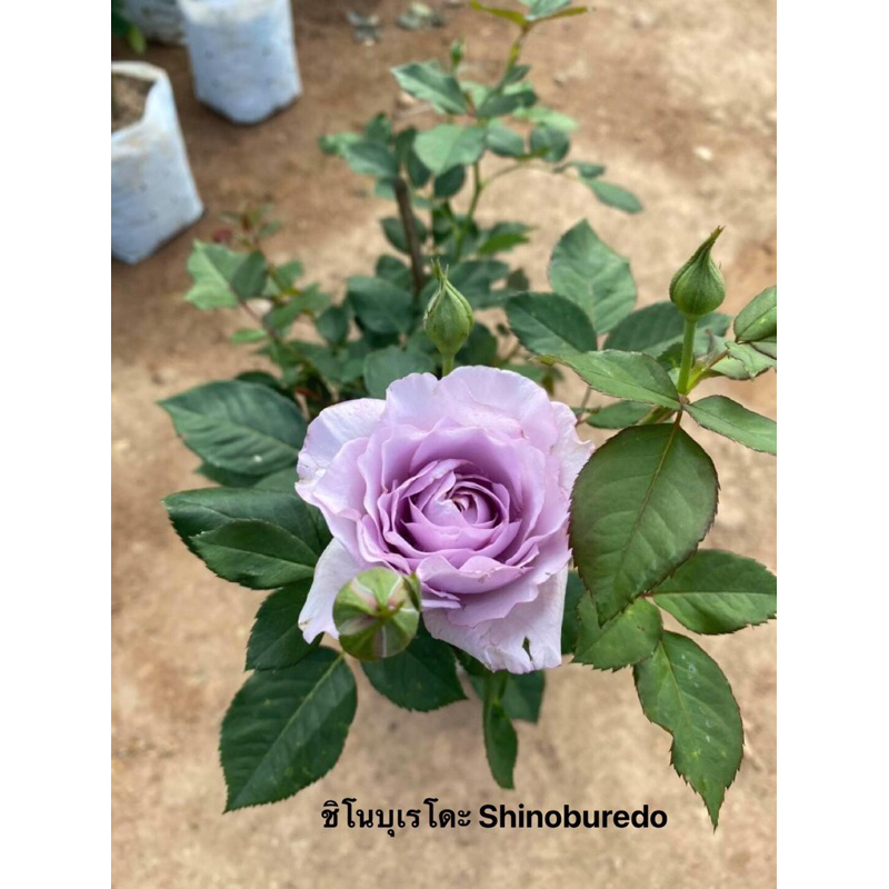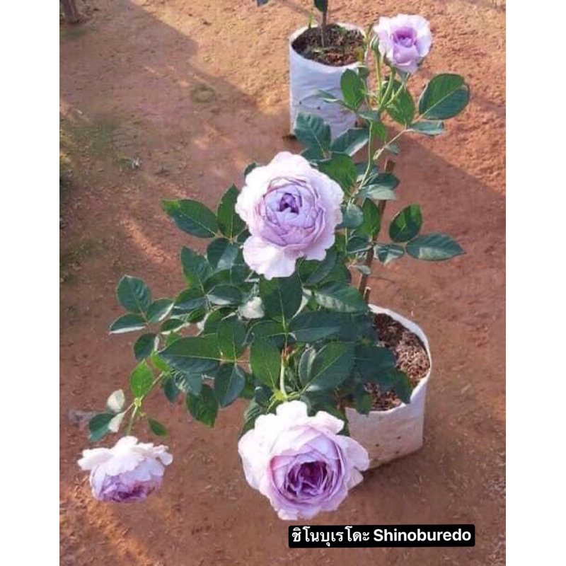 ชิโนบุเรโดะ Shinoburedo กุหลาบญี่ปุ่น เป็นกุหลาบพุ่ม สีม่วง มีกลิ่นหอม ดอกเป็นช่อ เลี้ยงง่าย