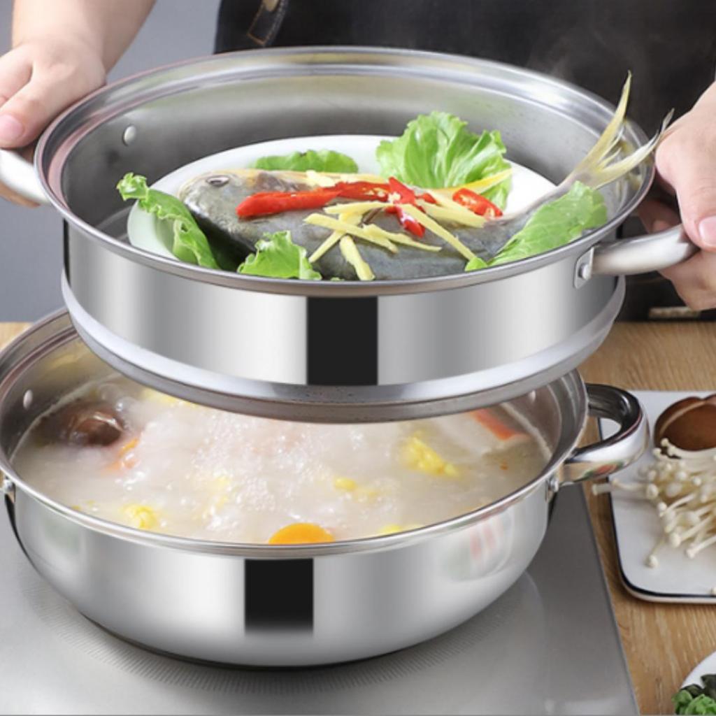 หม้อนึ่งสแตนเลส แบบฝาใส 3ชั้น ขนาด 28เซนติเมตร