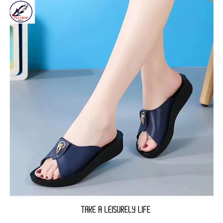 FLY SHOP รองเท้าแตะผู้หญิง! รองเท้าแตะอิดโรยมีสไตล์! 3 ซม. กันลื่นและทนต่อการสึกหรอ!
