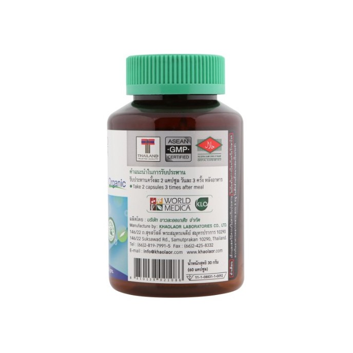 Khaolaor ขาวละออ สไปลิน่า 500 สาหร่ายสไปรูลิน่า 60 แคปซูล/ขวด
