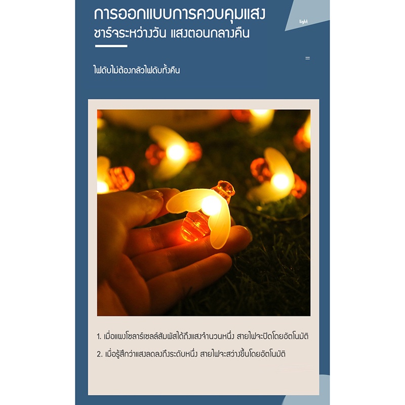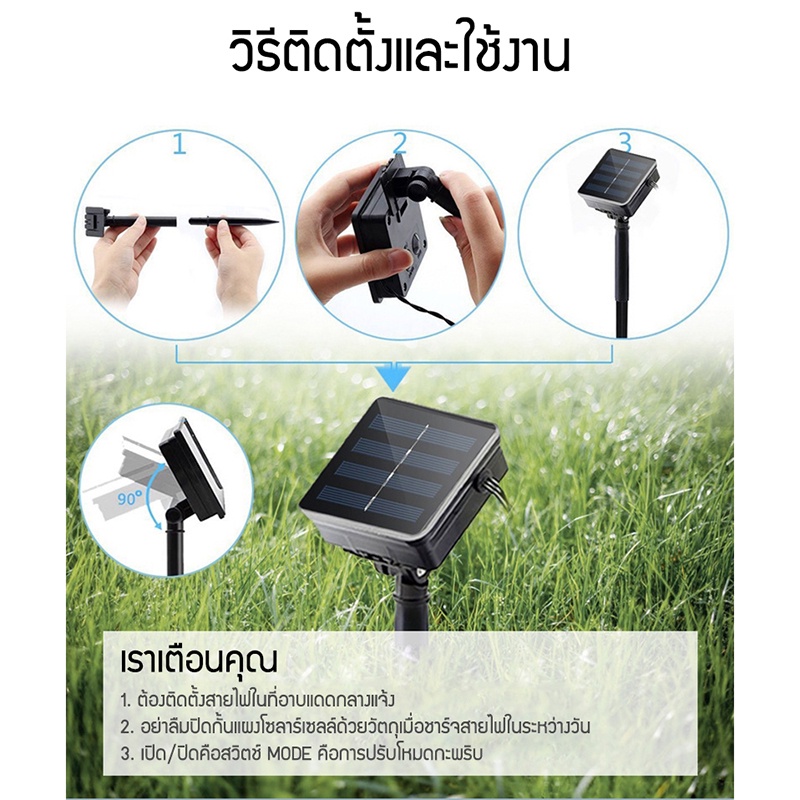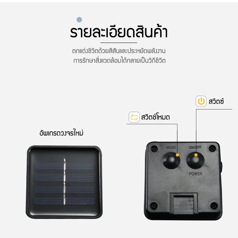 ไฟแบตเตอรี่พลังงานแสงอาทิตย์ สมาร์ทไฟสายยาว ประหยัดไฟได้มาก ค่าไฟ 0 บาท สวิตซ์ไฟอัตโนมัติ กันน้ำ กันแดด กันฝน