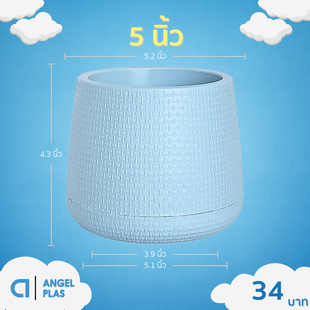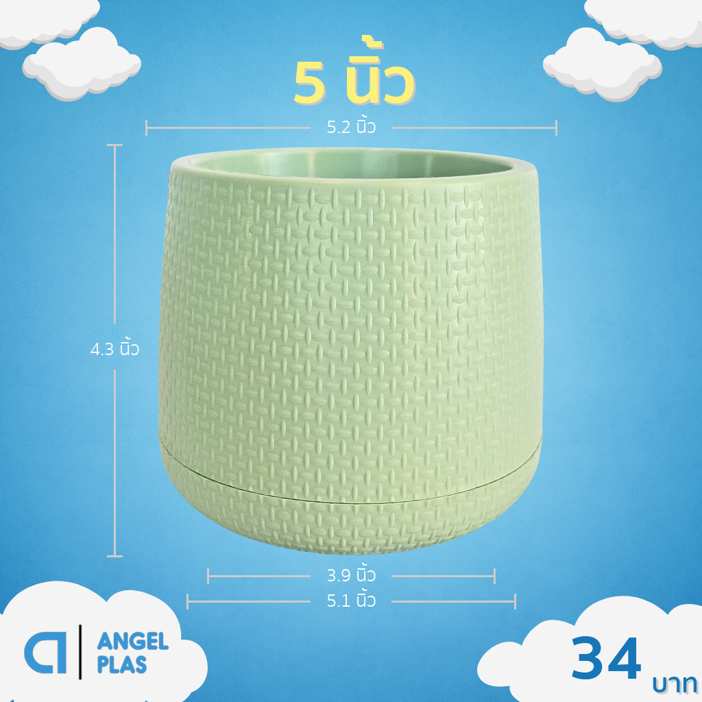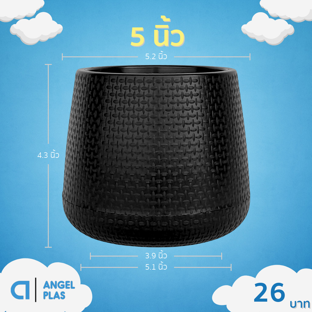 หยิบใส่ตะกร้ากระถาง กระถางต้นไม้ มินิมอล เบลล่า เบอร์ 5 นิ้ว สีดำ สีขาว เทา เขียว Bundle 5 ใบ ชิ้น อัน