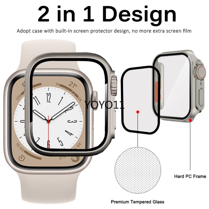 กระจก + ฝาครอบสำหรับ Apple watch case Ultra 2 9 8 7 6 SE 5 4 3 iWatch Accessorie Screen Protector Apple watch series 45 มม. 41 มม. 44 มม. 40 มม. 42 มม. 38 มม.