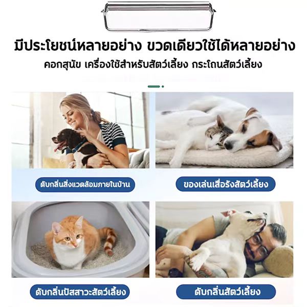 🐶🐱 ดับกลิ่น ฆ่าเชื้อโรค ได้อย่างมีประสิทธิภาพ สเปรย์มีคุณสมบัติในการย่อยสลายกลิ่นเหม็น, กลิ่นอับชื้น ที่เกิดจากสัตว์เลี้ยง เช่น กลิ่นตัว, กลิ่นปัสสาวะ-อุจจาระ, กลิ่นอาเจียน ฯลฯ ให้หมดไปและยังมีกลิ่นหอมอ่อนๆ ที่ช่วยลดการกลับมาทำสกปรกซ้ำที่จุดเดิมอีกด้วย.