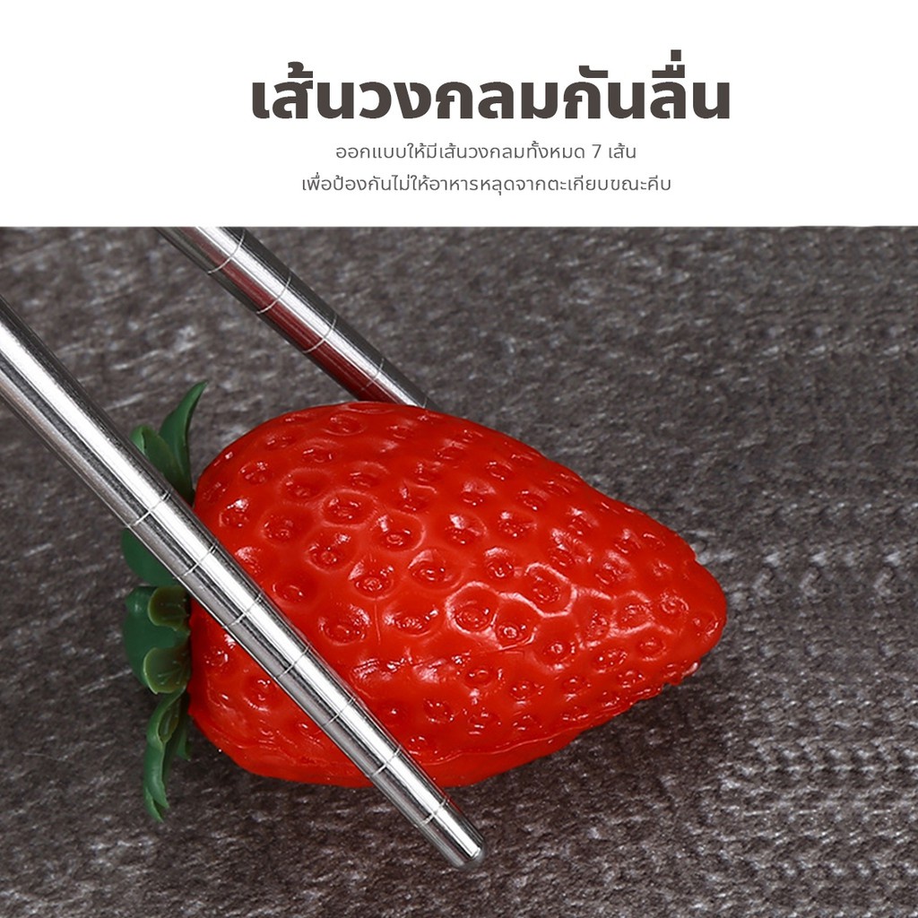 -ช้อน/ตะเกียบสแตนเลส ดีไซน์ตะเกียบกันลื่น จับถนัดไม่ลื่นมือ