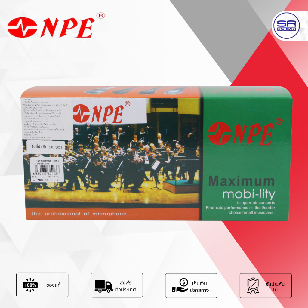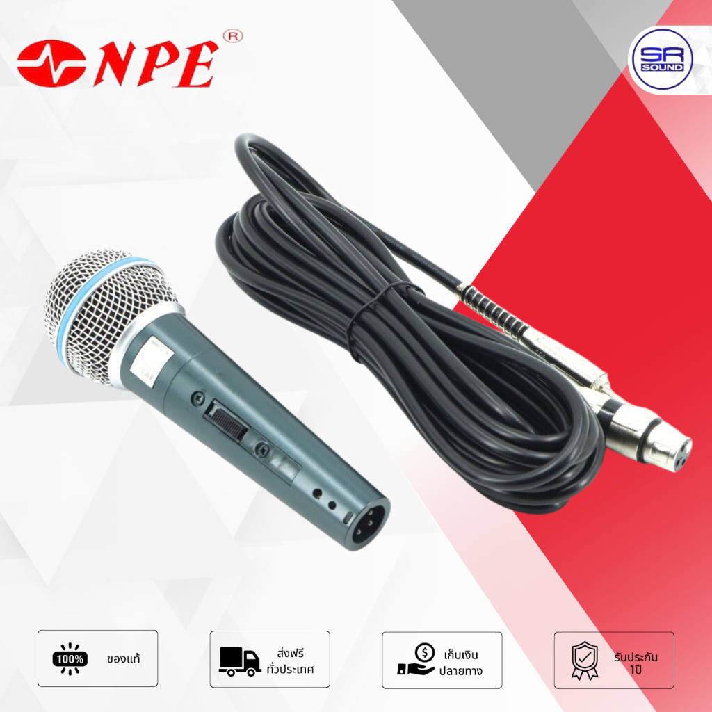 NPE SM-58A Microphone ไมโครโฟนแบบสาย ที่มีความไวเสียงสูง สามารถพูดในระยะห่างจาก ไมค์ได้ โดยที่ได้น้ำหนักเสียงคุณภาพดีเยี่ยม มาพร้อมสายยาว 4.5 ม.