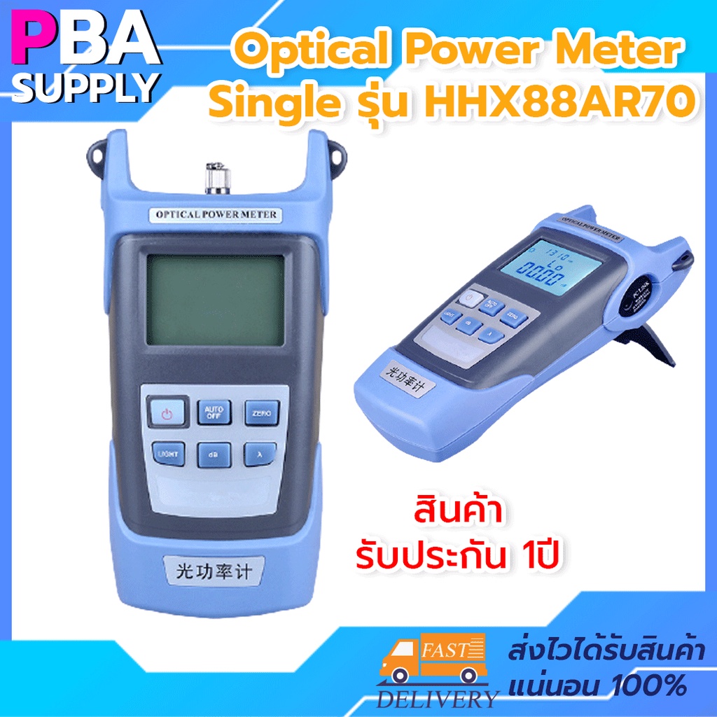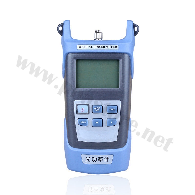Optical Power Meter เป็นอุปกรณ์สำหรับทดสอบค่าความเข้ม, ความแรงของสัญญาณแสงที่ปล่อยมาจากต้นทาง หลังจากที่ทำการเข้าหัวไฟเบอร์ออฟติก ตัวเครื่องจะแสดงหน่วยวัดค่าออกมาเป็น -dB. การวัดค่าแสงดังกล่าว ก่อนการวัดต้องปรับค่าของเครื่องให้ตรงกับค่