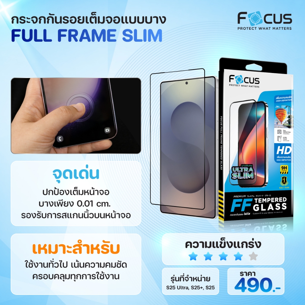 ฟิล์มกระจก เต็มจอ ชนิดบาง Focus Slim Samsung S25 S25+ S24 S24+ S23 S23+ S22 S21 Plus โฟกัส ใส ซัมซุง