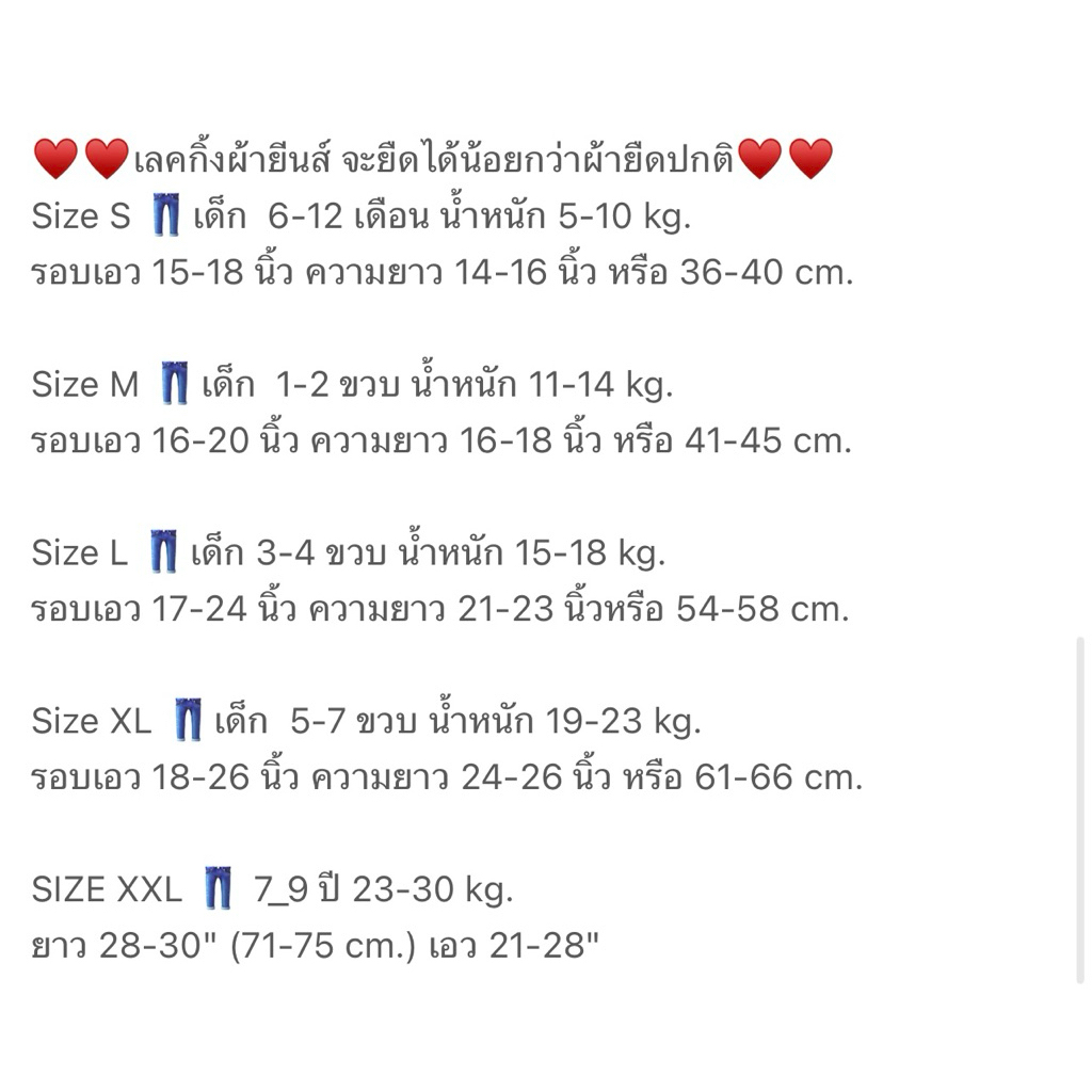 เลคกิ้งเด็กสีพื้น Size S-XXL 2XL เลกกิ้งเด็ก กางเกงเด็กสีพื้น กางเกงขายาวเด็ก XXL