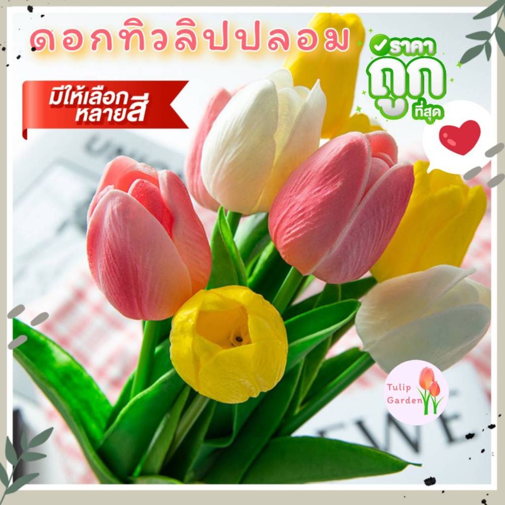 ดอกทิวลิปปลอม ดอกไม้ปลอม ดอกไม้ตกแต่งบ้าน ดอกทิวลิปสี ราคาต่อ1ดอกนะคะ
