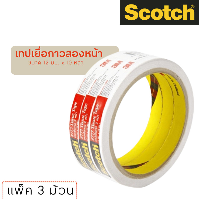 SCOTCH เทปเยื่อกาวสองหน้า ขนาด 12 มม. x 10 หลา (แพ็ค 3 ม้วน)SCOTCH เทปเยื่อกาวสองหน้า เป็นตัวช่วยที่ดีสำหรับงานติดประกบชิ้นงานและงานอเนกประสงค์ ด้วยเนื้อกาวเหนียวพิเศษที่ติดแน่น ทนทาน ใช้งานง่ายโดยไม่เยิ้มเลอะพื้นผิว เหมาะสำหรับงานในสำนักงาน งานเอกสาร และ